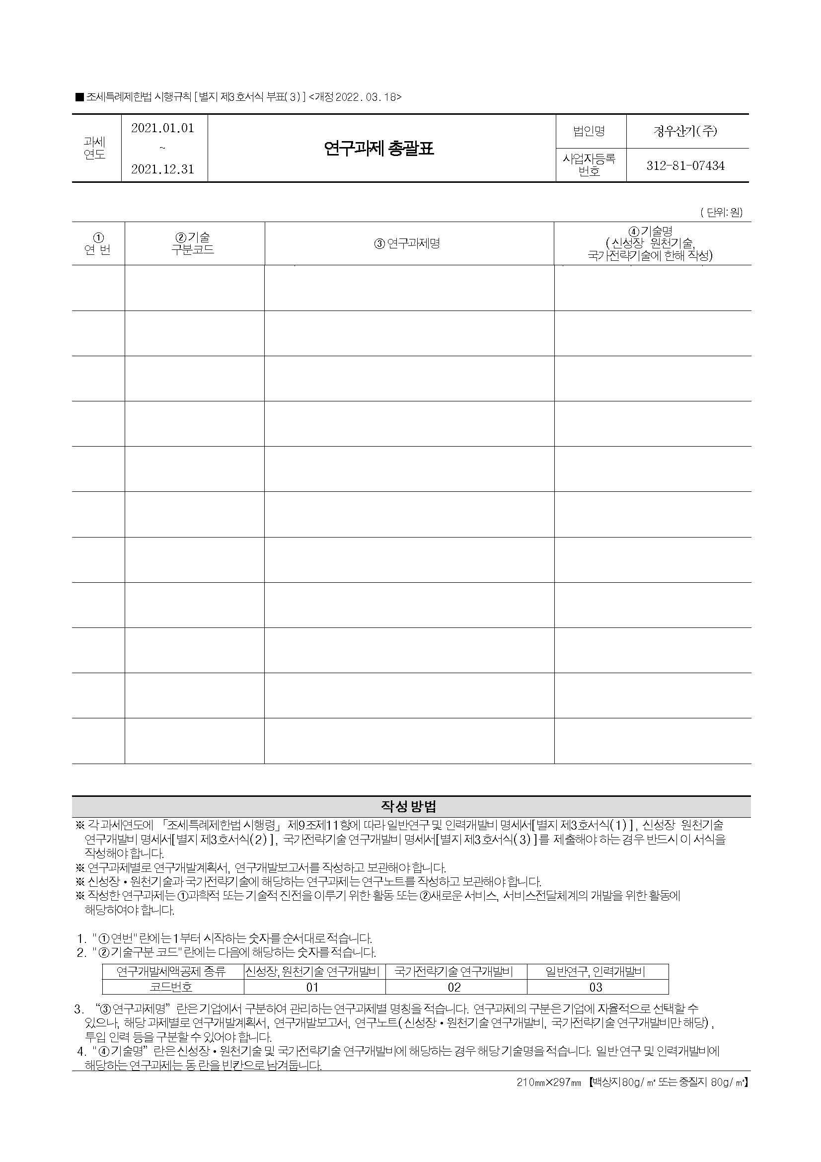 ■ 조세특례제한법 시행령 [별표 6] <개정 2022. 2. 17.>