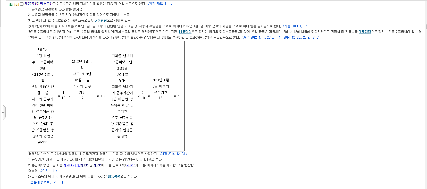 가) 「소득세법」 제22조(퇴직소득) 에 따른 퇴직소득에 해당하는 금액