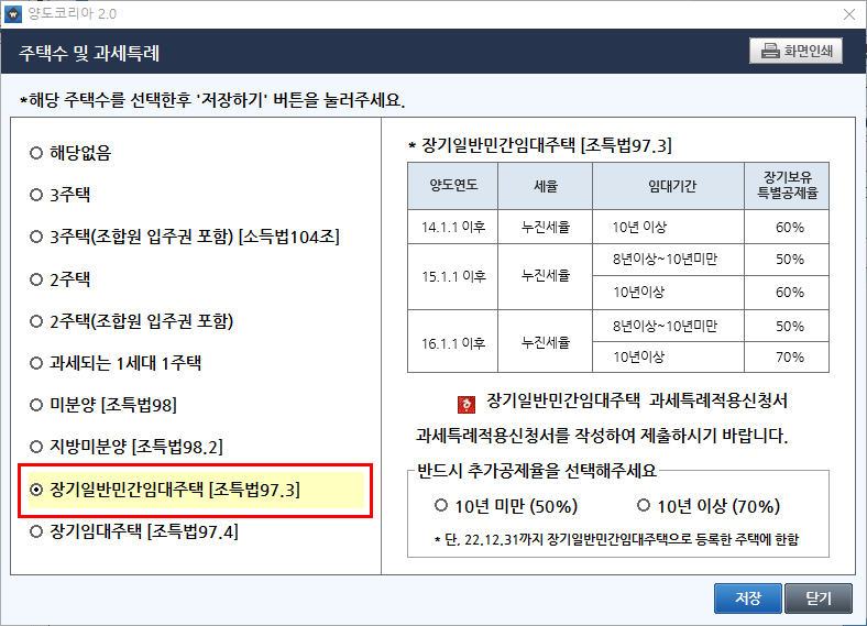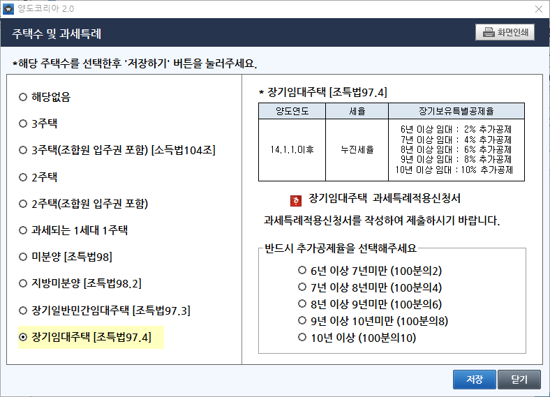 ⑦ 제1항 제2호ㆍ제3호ㆍ제8호의2 및 제4항을 적용받으려는 자는 해당 임대주택등 또는 일반주택을 양도하는 날이 속하는 과세연도의 과세표준신고서와 기획재정부령으로 정하는 신청서에 다음 각 호의 서류를 첨부하여 납세지 관할세무서장에게 제출해야 한다.(2020.02.11 개정)