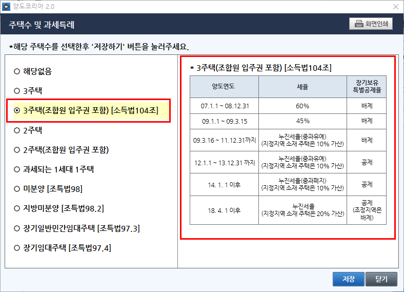 이 경우 해당 주택 보유기간이 1년 미만인 경우에는 제55조 제1항[ 종합소득세 세율 ]에 따른 세율에 100분의 10(제3호 및 제4호의 경우 100분의 20)을 더한 세율을 적용하여 계산한 양도소득 산출세액과 제1항 제3호[보유기간이 1년미만인 것]의 세율을 적용하여 계산한 양도소득 산출세액 중 큰 세액을 양도소득 산출세액으로 한다.(2017.12.19 신설)