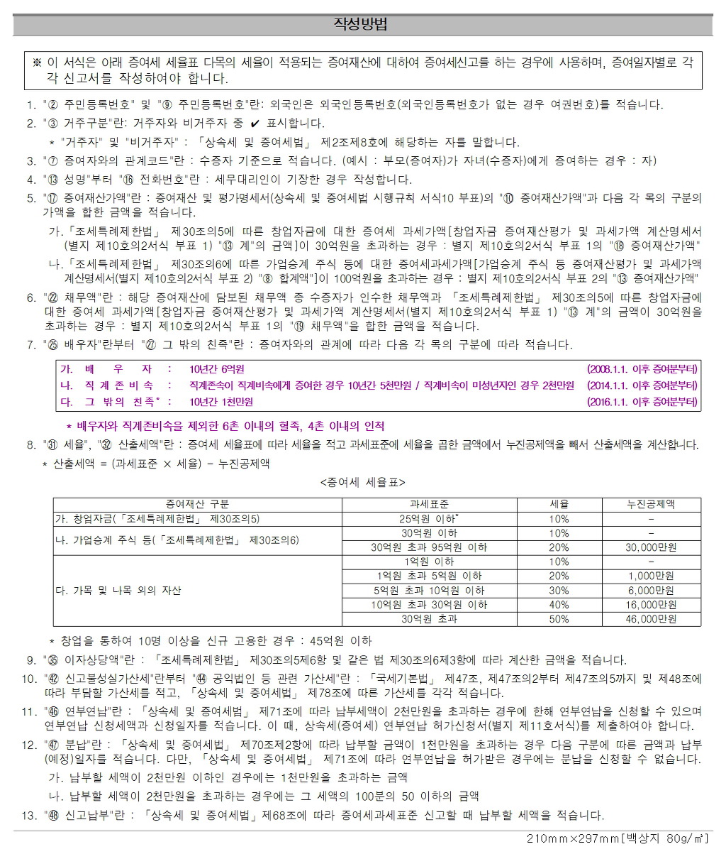 2. 증여재산 및 평가명세서 ■상속세 및 증여세법 시행규칙 [별지 제10호서식 부표] <개정 2008.4.30>