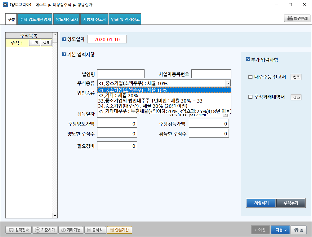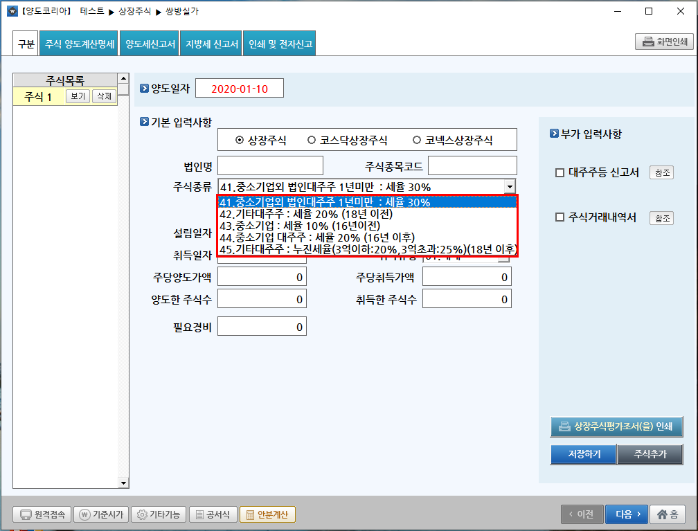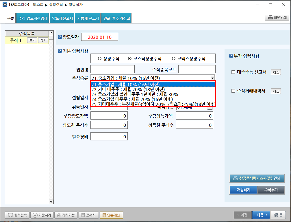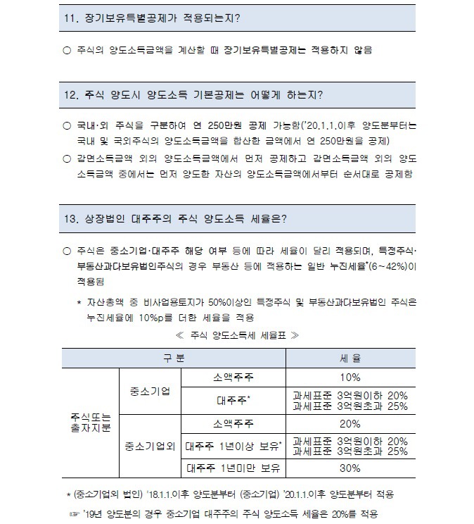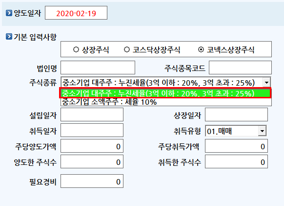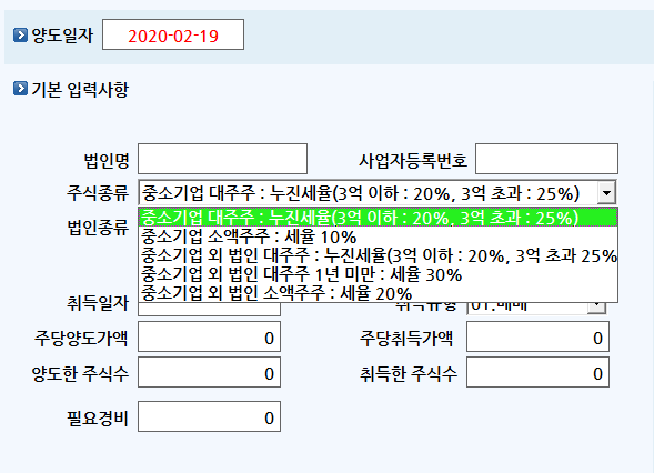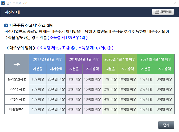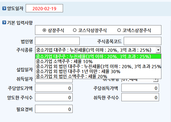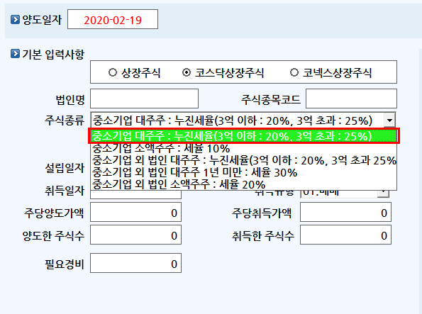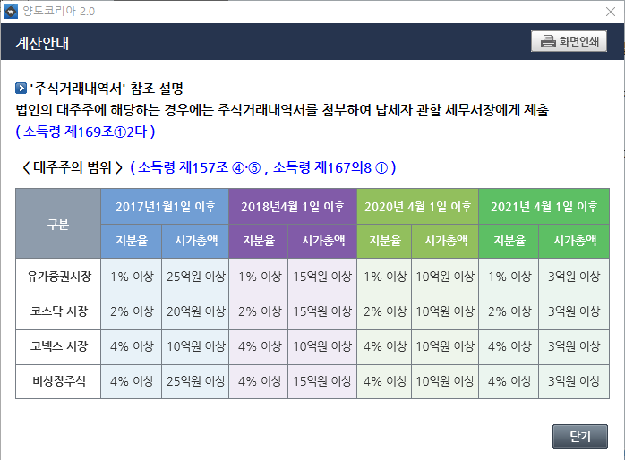중소기업 대주주에 대한 세율 및 코드 적용은 2016.1.1. 이후 양도분부터 적용하고, 중소기업 외 대주주에 대한 세율 및 코드 적용은 2018.1.1. 이후 양도분부터 적용합니다.