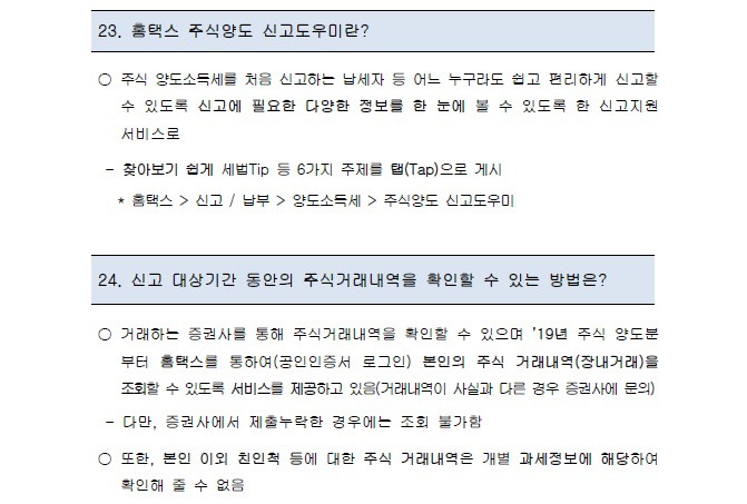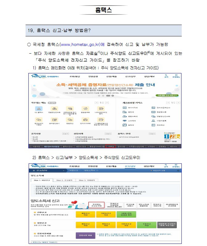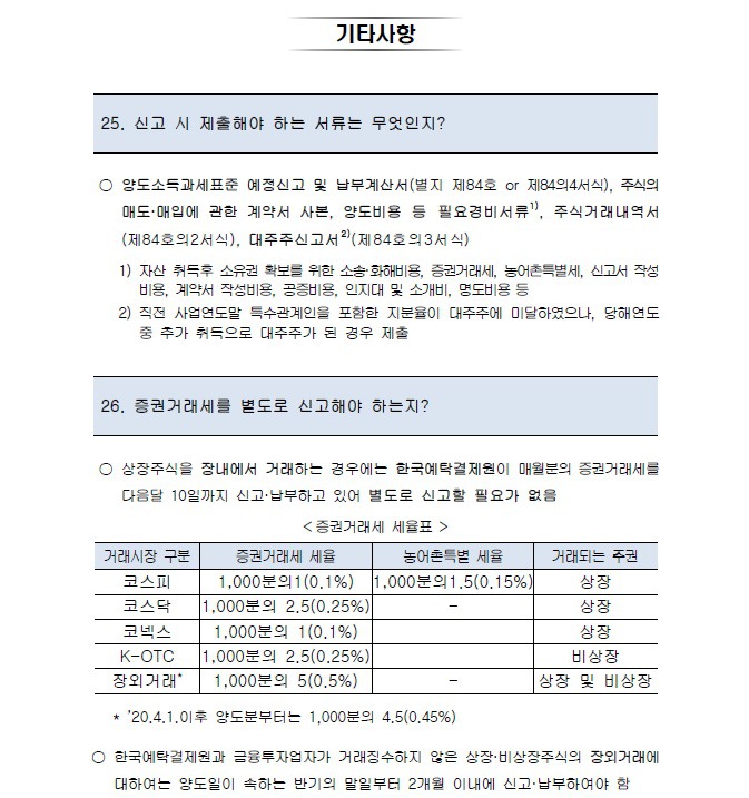 ○주식을 양도하는 경우에는 「증권거래세」를 신고·납부(한국예탁결제원, 금융투자업자가 원천징수한 경우 제외)하시기 바랍니다.