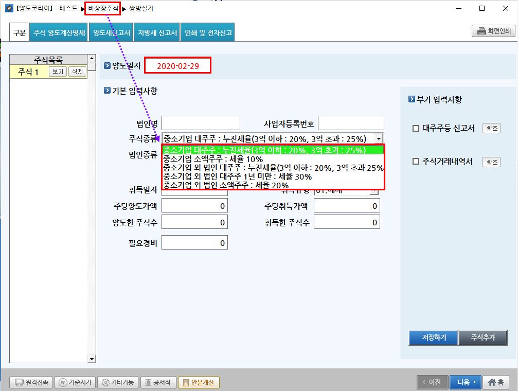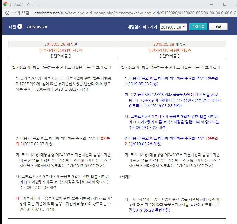 비상장주식 증권거래세(병) 2020년 3월 31일 까지 양도분 0.5% , 2020년 4월 1일 이후 양도분 0.45%