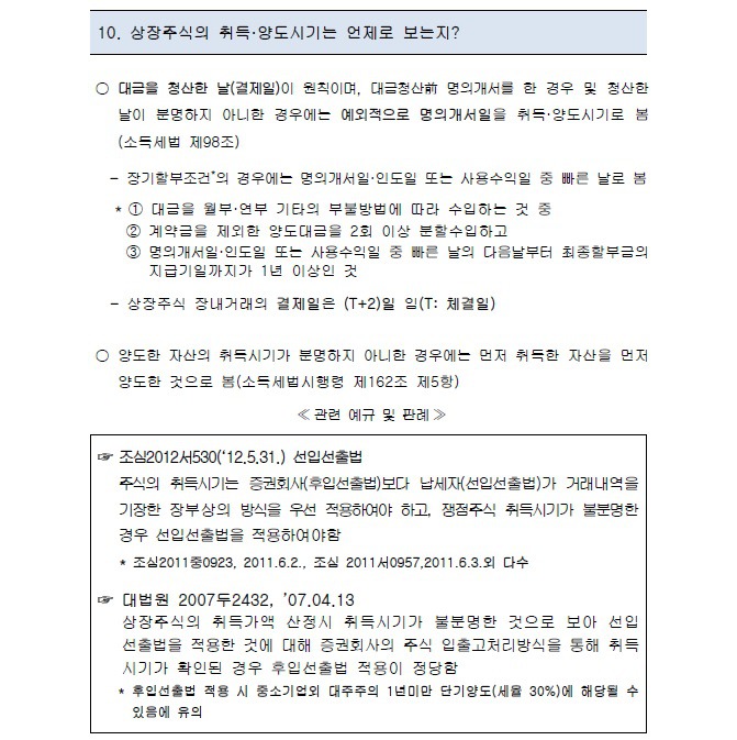 양도한 자산의 취득시기가 분명하지 아니한 경우에는 먼저 취득한 자산을 먼저 양도한 것으로 봄 (소득세법시행령 제162조 제5