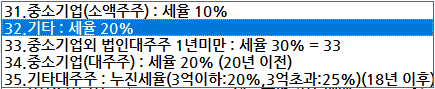 국외전출자의 주식 등 평가이익에 대한 납세자인 경우 3.주식종류코드 관련 표에도 불구하고 20% 세율을 적용합니다.