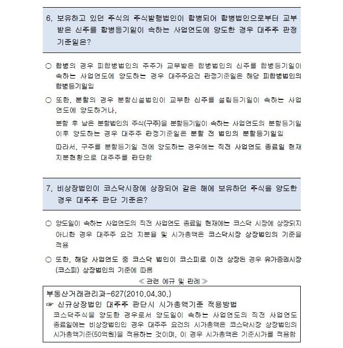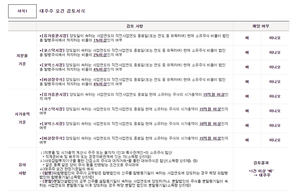 가. 소유주식의 비율시가총액 등을 고려하여 대통령령으로 정하는 대주주(이하 이 장에서 "대주주"라 한다)가 양도하는 주식등