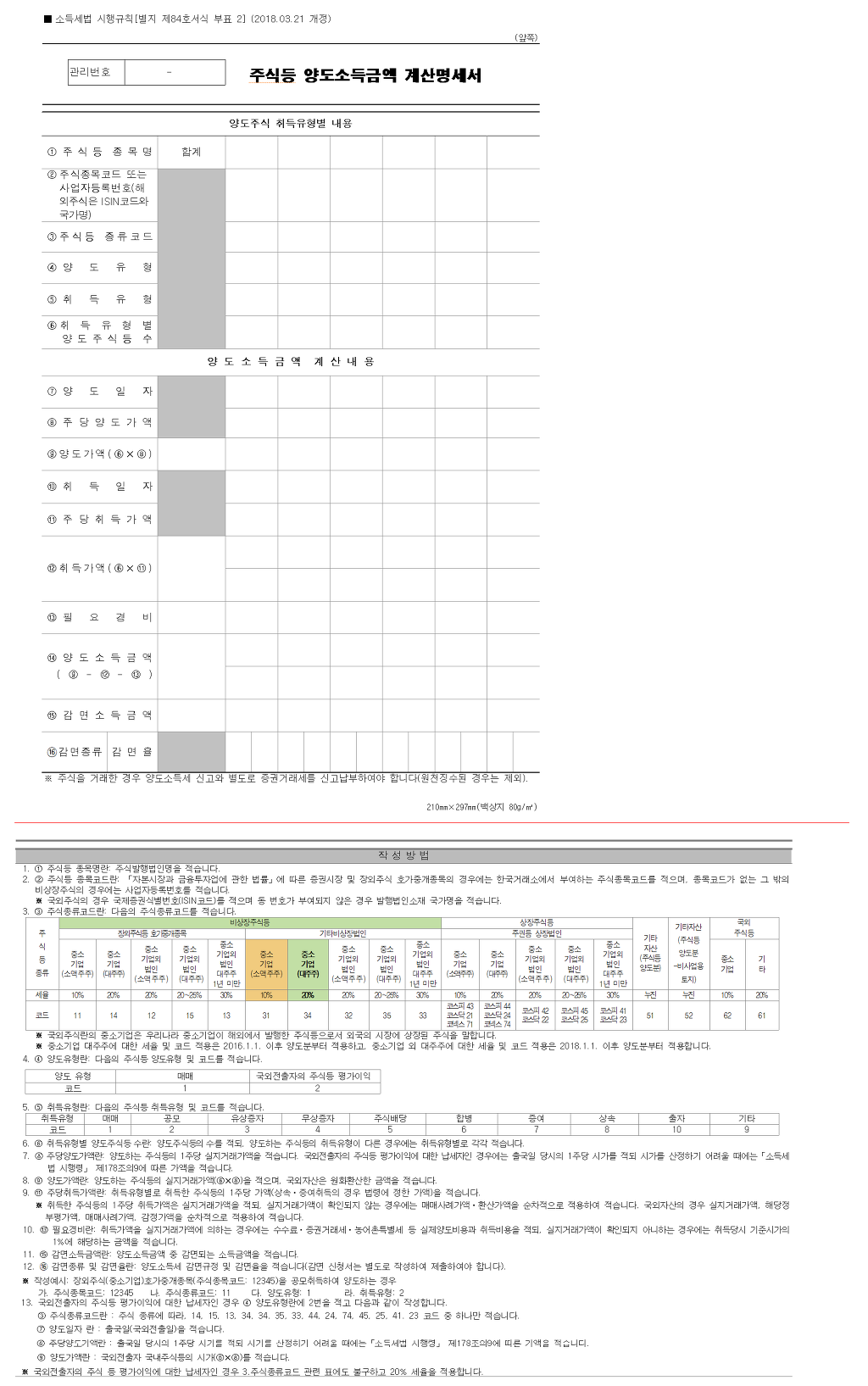 첨부파일 샘플 - 양도소득세과세표준 신고서 , 주식양수도계약서 및 신고서 (2019-12-31 개정).xlsx
