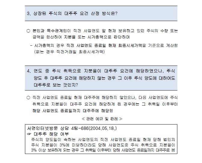다만소유주식의 비율·시가총액 등을 고려하여 대통령령으로 정하는 주권비상장법인의 대주주에 해당하지 아니하는 자