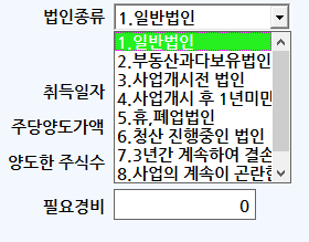 소송,화해비용,증권거래세,농어촌특별세,신고서작성비용,계약서작성비용,공증비용,인지대 및 소개비,명도비용 등
