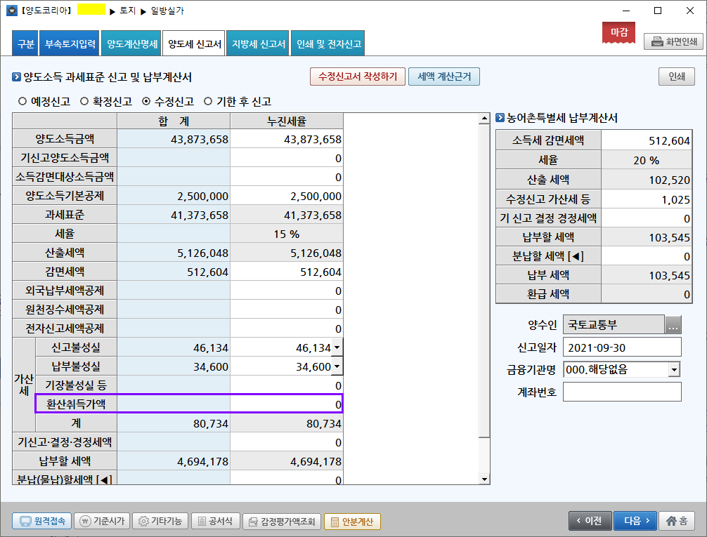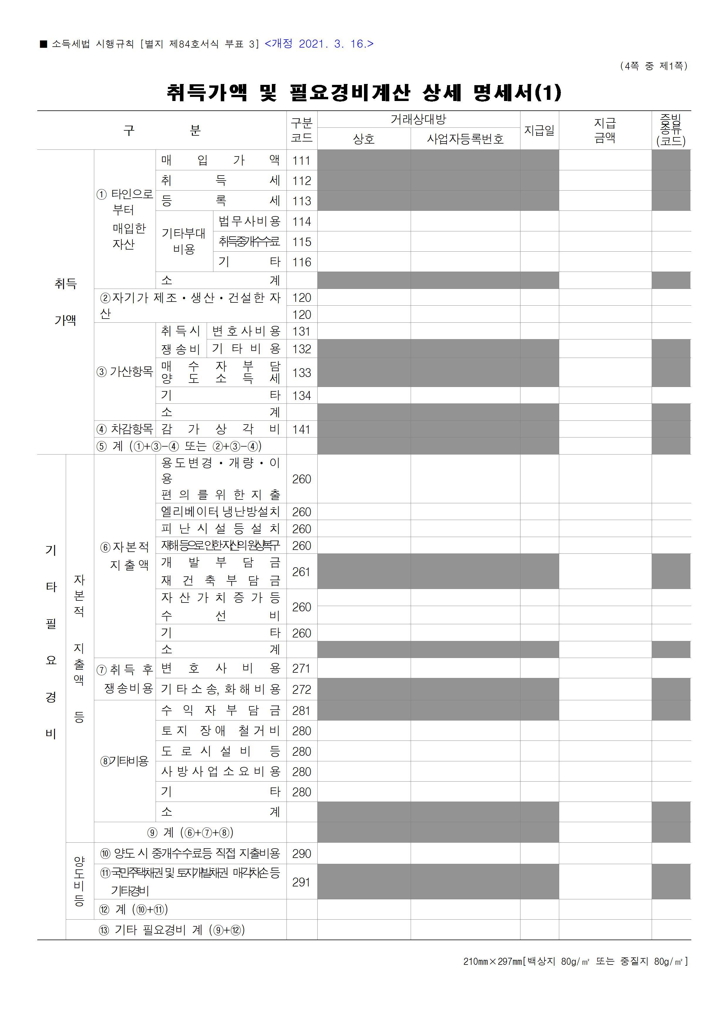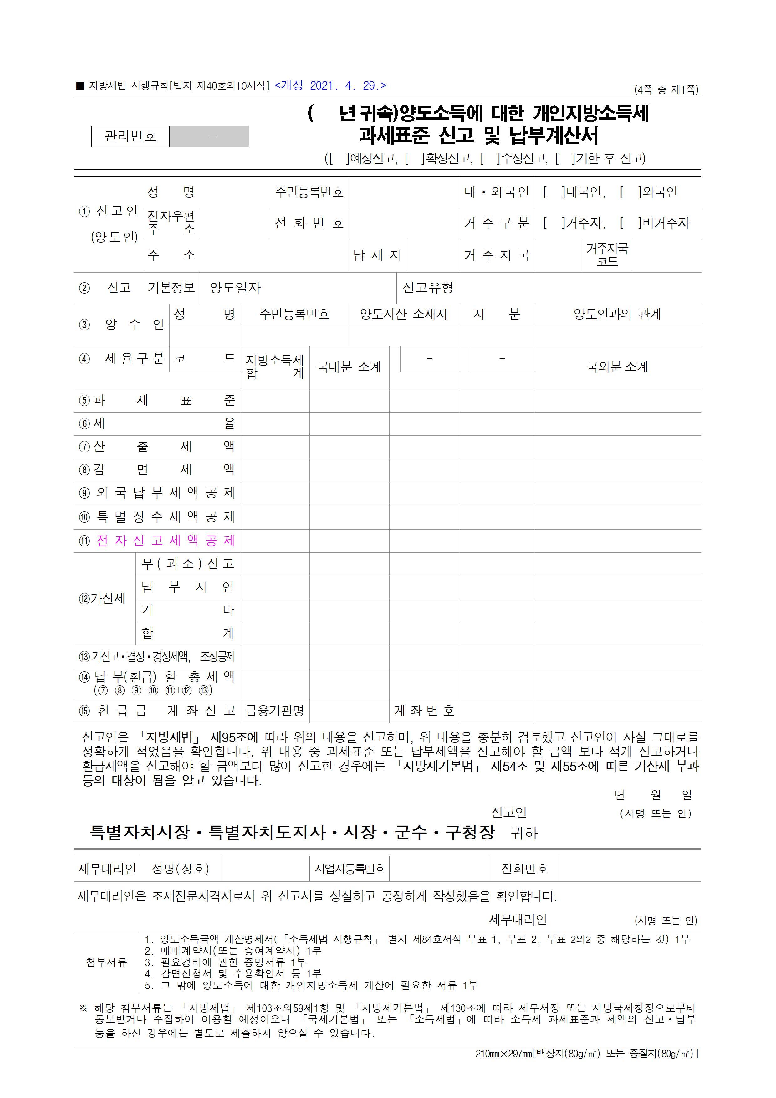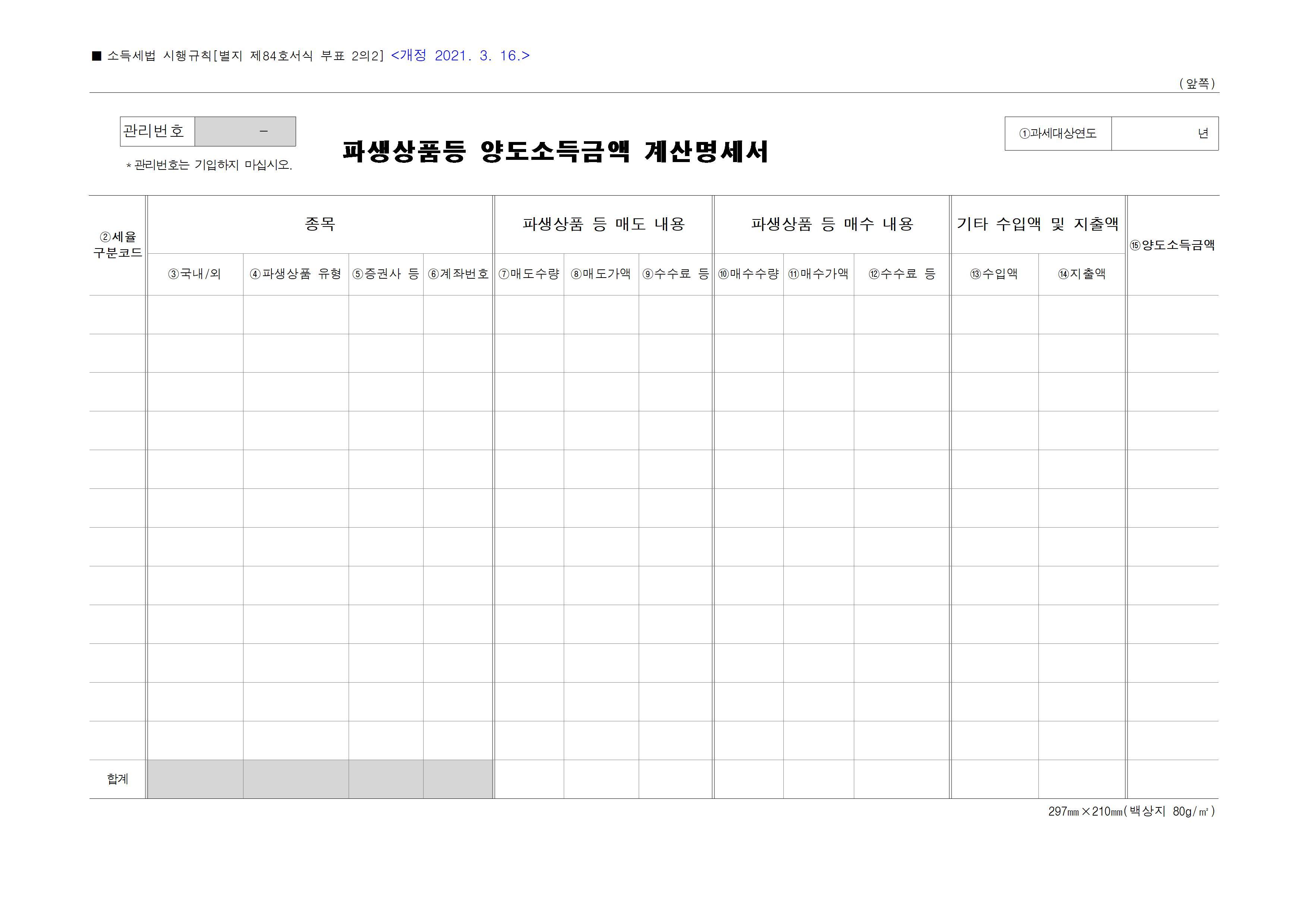 양도득세 신고서 HWP , 엑셀 (.XLSX) 소득세법 시행규칙 [별지 제84호서식] <개정 2021. 3. 16.>