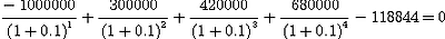 지난 시간의 두 번째 예를 한 번 보죠. 거기에서 현금흐름은 -1000000, 300000,420000,680000이었습니다. 이는 R1,R2등의 현금흐름이죠.
