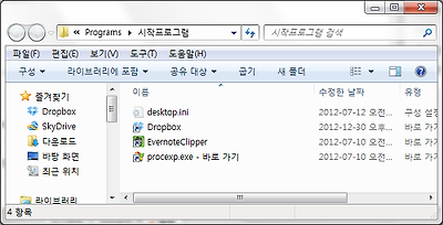 여기에 바로가기가 만들어진 프로그램은 다음 부팅할 때 부터 자동으로 시작된다.