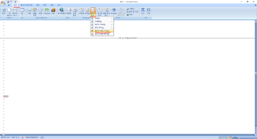 한글 자동 번호 없애기 한글 한쪽 페이지를 가로 혹은 세로 변경하기 , MS WORD 2007 MS워드에서 페이지번호 중간부터 시작하기 - 선우회계법인 천안 주황규팀장