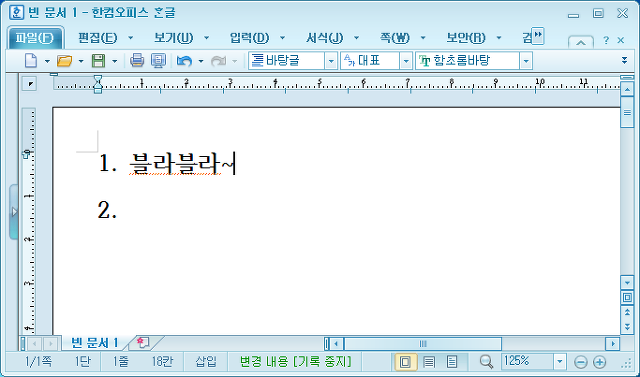 “1. 블라블라~” 이렇게 입력하고 엔터를 치면 “2.”가 자동으로 기입됩니다. 아래 그림 처럼요.