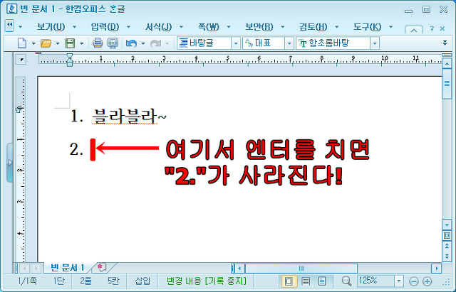 ▶ 이때 다시 한번 엔터를 치면 “2.”가 사라진다.
