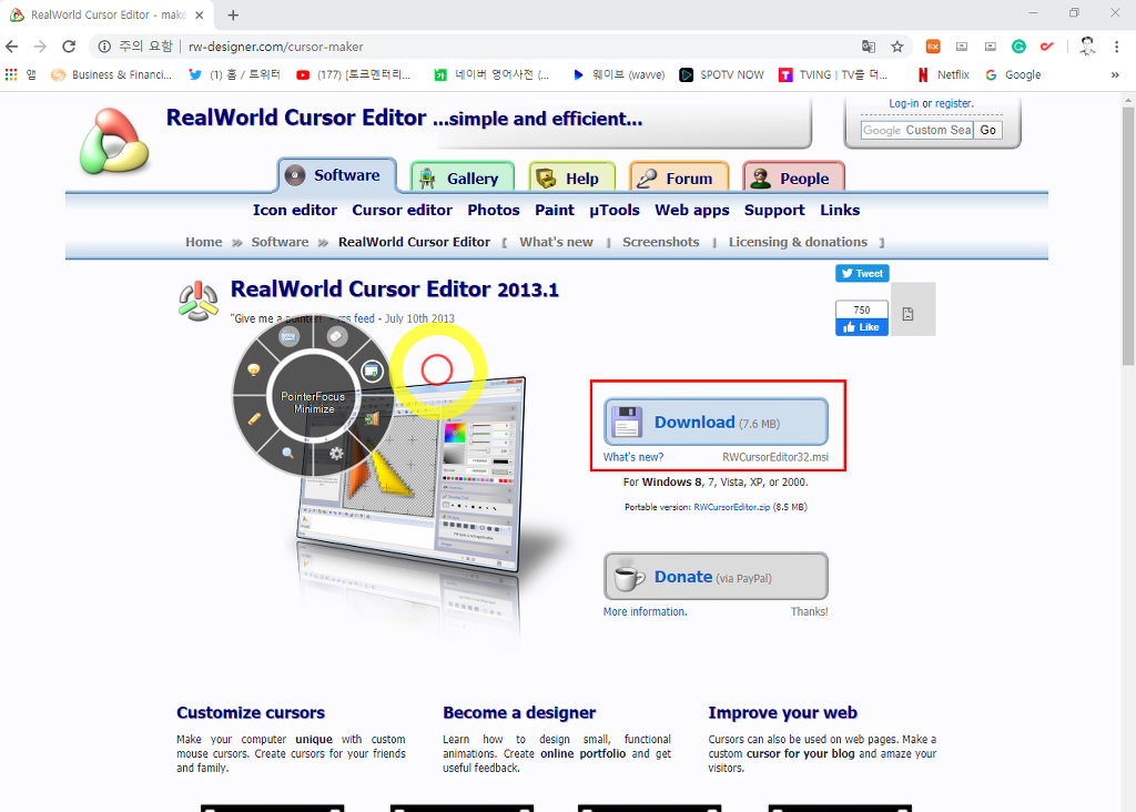 윈도우즈 업데이트 하고 나니 마우스 커서가 안보이네욤. Ctrl 누르면 원이 마우스 커서가 어디있는지 표시 하게 해놨는데