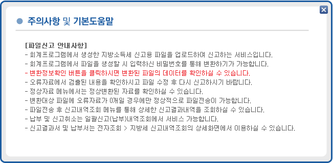 위택스는 대국민 서비스로 최신 운영체계 및 브라우저를 지원하고 있습니다. 다만, XPLATFORM 환경에서 실행되는 지방소득세(특별징수·법인소득분)의 경우 인터넷 익스플로러 9~11(32bit)에 최적화 되어 있으며, Edge / Chrome / Firefox 의 경우 실행이 안 될 수 있습니다.