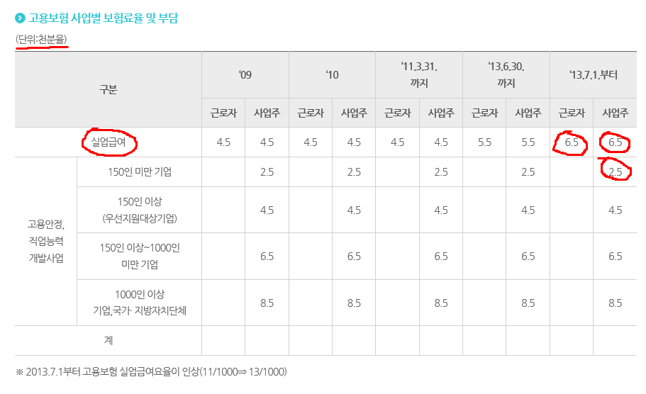 고용보험의 보험료율은 보험수지의 추이와 경제상황 등을 고려하여 1000분의 30범위 내에서 고용안정, 직업능력개발사업의 보험료율 및