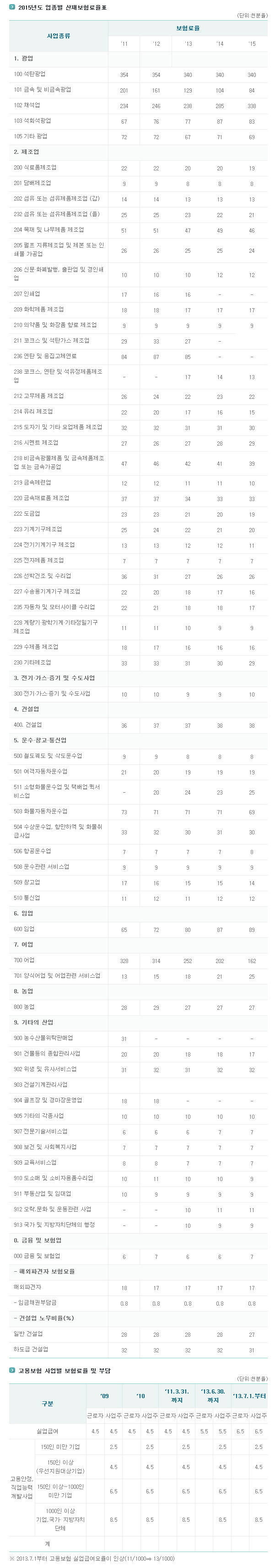 매년 6월30일 현재,과거 3년간의 임금총액에 대한 보험급여 총액의 비율을 기초로 재해 발생의 위험성에 따라 분류된 업종별 보험료율을 세분화하여 (보통 매년12월31일경 고시)적용합니다.