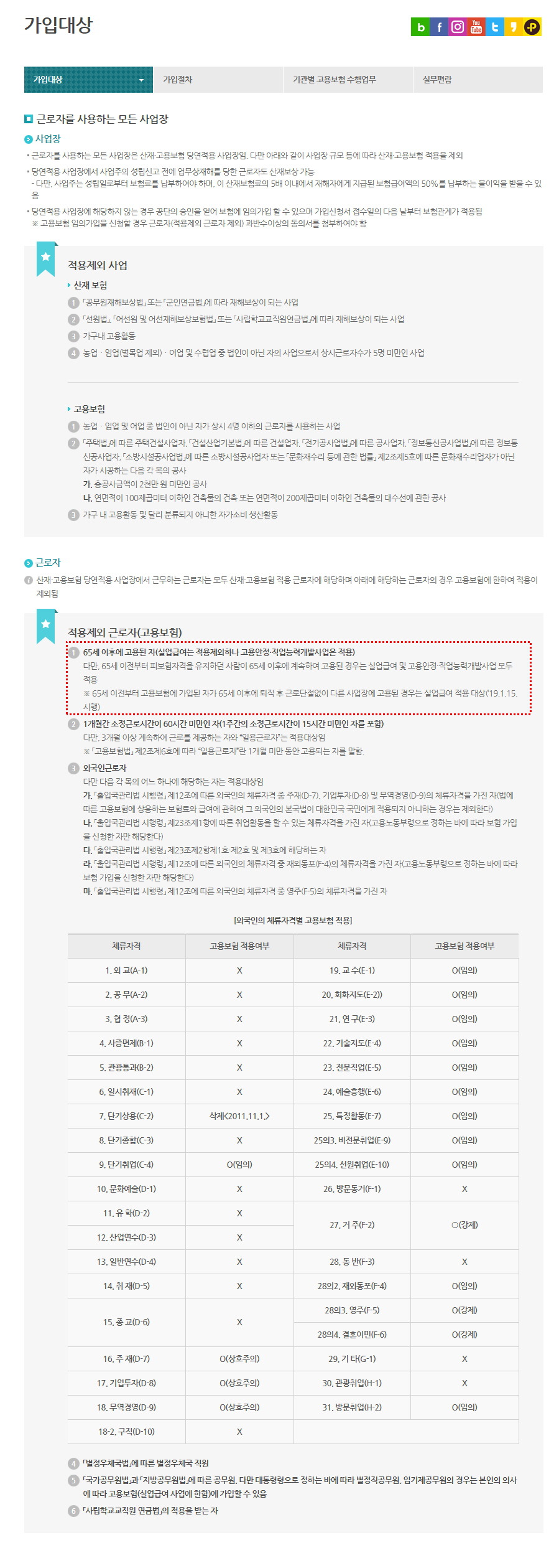 - 1① 65세 이후에 고용된 자(실업급여는 적용제외하나 고용안정·직업능력개발사업은 적용)