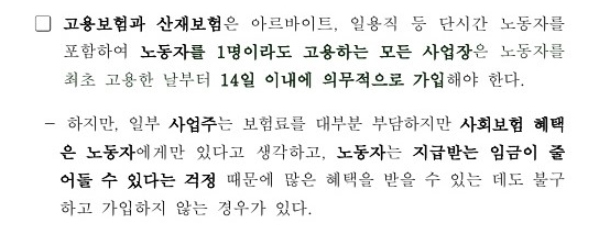 ※ 「고용보험법」 제2조제6호에 따라 “일용근로자”란 1개월 미만 동안 고용되는 자를 말함.