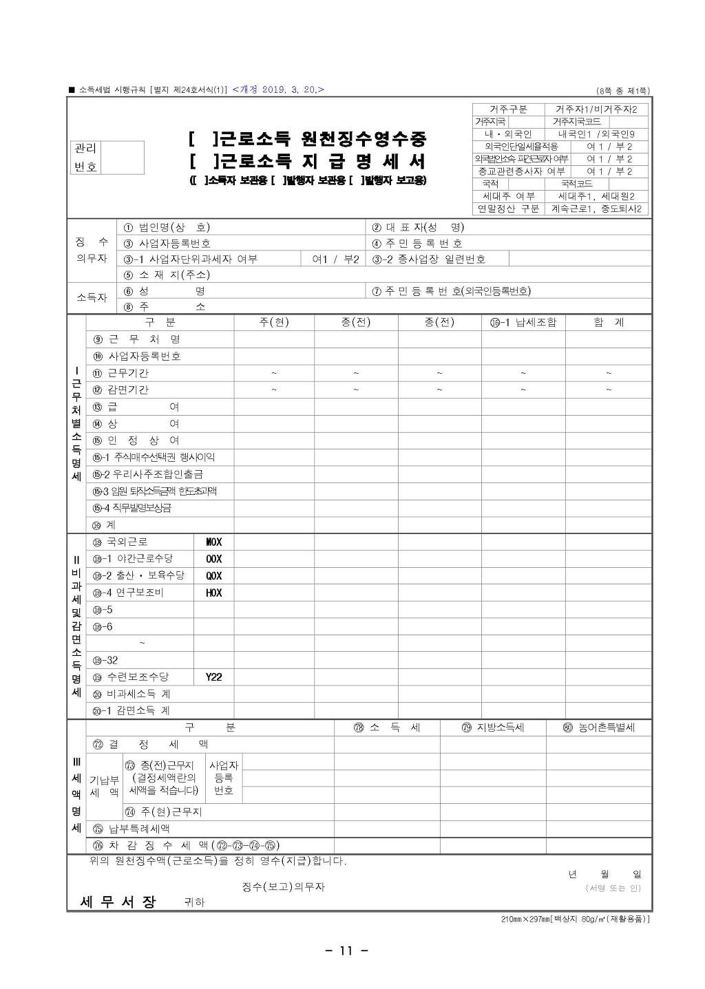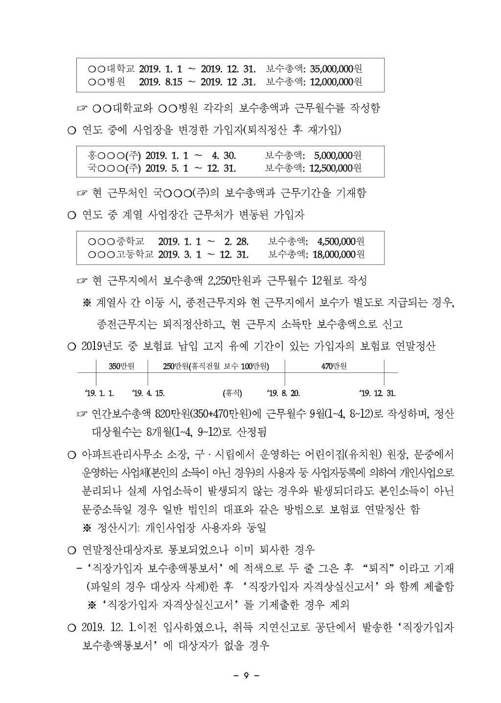 - 2019년도 보수총액통보서(회신용)에 보수(소득)총액과 근무월수를 작성하여 공단에 제출