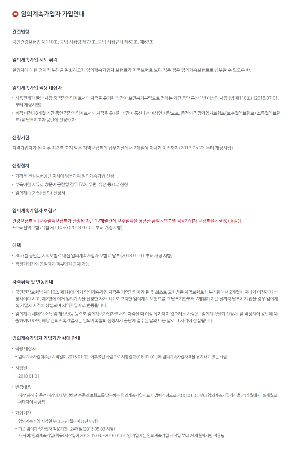건강보험임의 계속가입자 -> 퇴직후 사업소득이 있는 사람들 고려 작성자주황규|작성시간21.06.11|조회수100 목록 댓글 0 글자크기 작게가 글자크기 크게가 다음검색 현재 게시글 추가 기능 열기 북마크 공유하기 신고 센터로 신고 댓글 댓글 0 댓글쓰기 답글쓰기 댓글 리스트