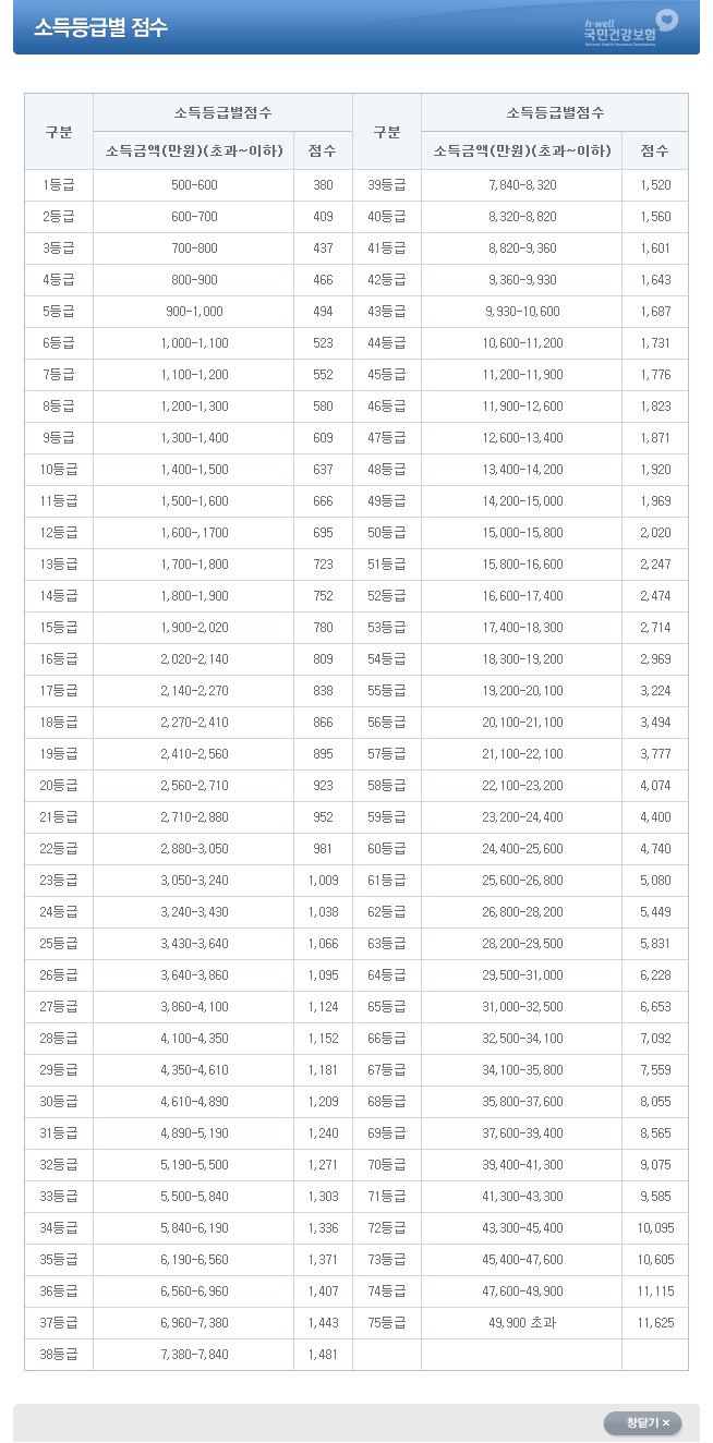 소득등급별 점수