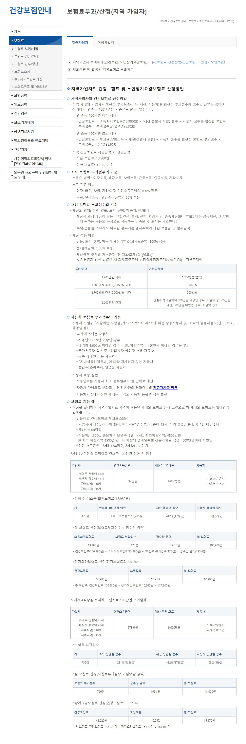 지역가입자 부가체계 (건강보험 , 노인장기요양보험)