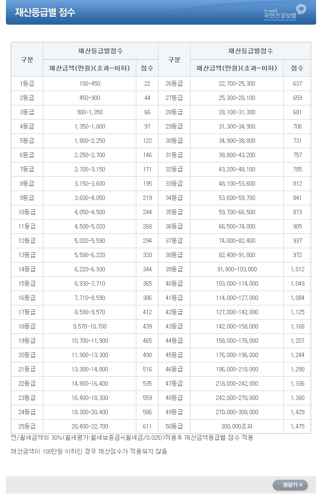 재산등급별 점수