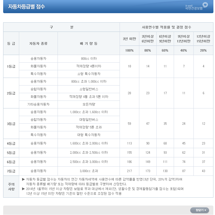 자동차등급별 점수