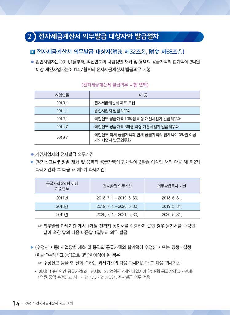 ② 전자세금계산서 의무발급 개인사업자가 전자세금계산서를 발급하여야 하는 기간은 사업장별 재화 및 용역의 공급가액의 합계액이 3억원 이상인 해의 다음 해 제2기 과세기간과 그 다음 해 제1기 과세기간으로 한다.