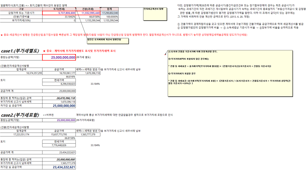 토지건물 부동산 일괄양도시 안분기준 부법 제29조 부령 제64조 [ 토지와 건물 등을 함께 공급하는 경우 건물 등의 공급가액 계산 ]