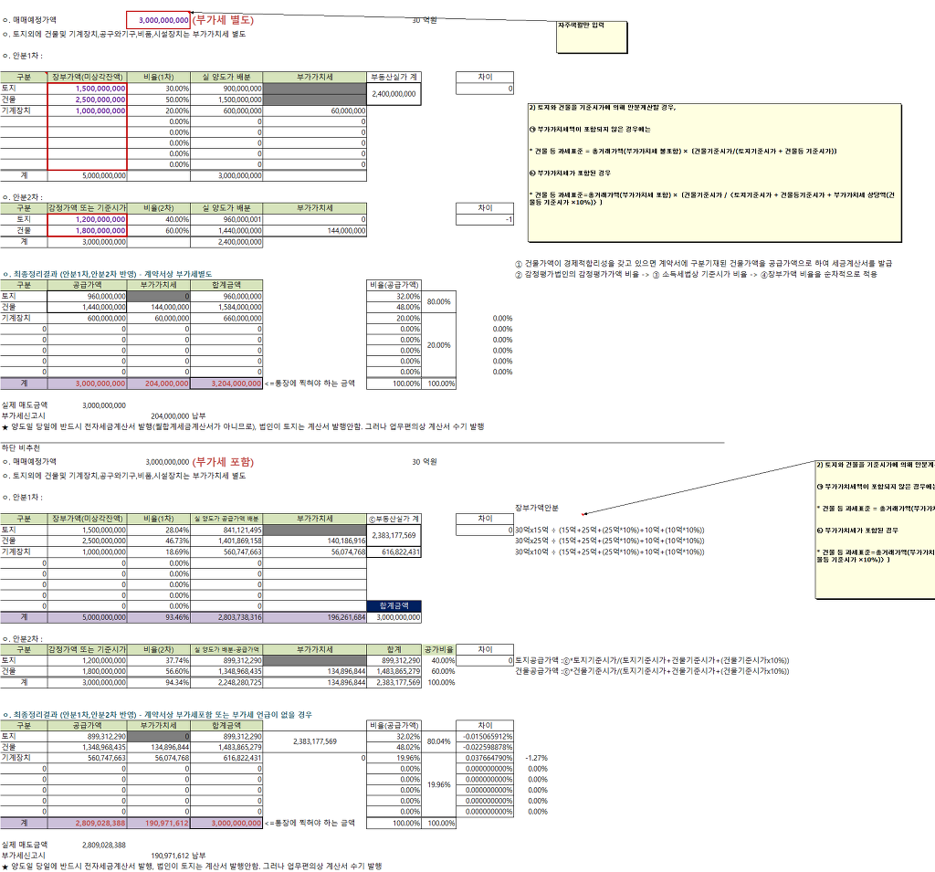 예제) 매매예정가액이 30억원에 부가세 별도일 경우
