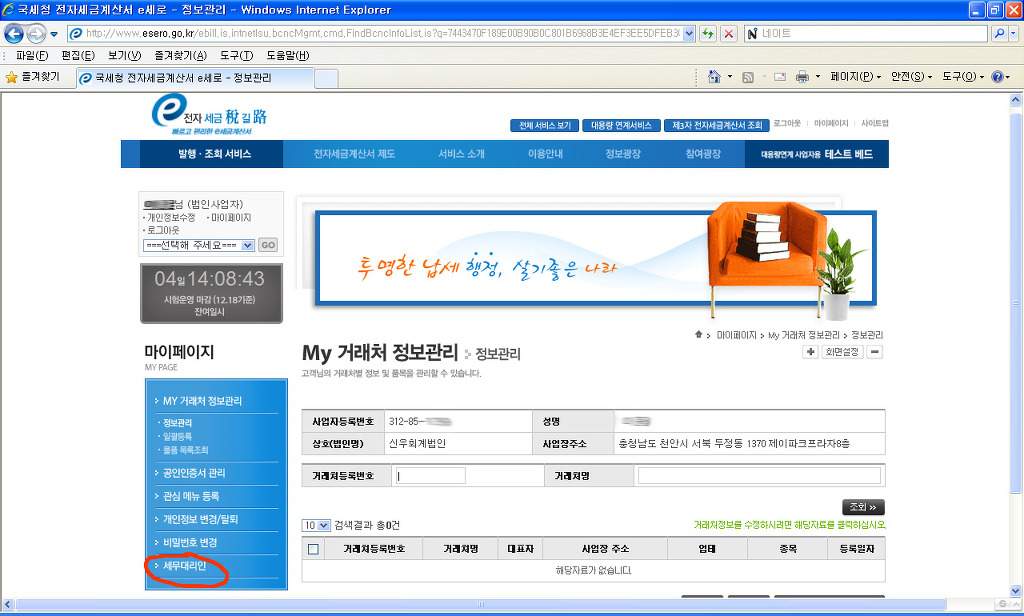 특히, 12월부터는 세무사(회계사)가 e-세로에서 수임업체의 동의를 받아 전자세금계산서 발행.수취내역을 확인할 수 있는 조회화면이 개설되었음을 알려드리오니,