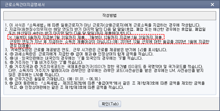 · 상용 근로소득지급명세서: 휴업·폐업·해산한 달의 다음다음 달 말일