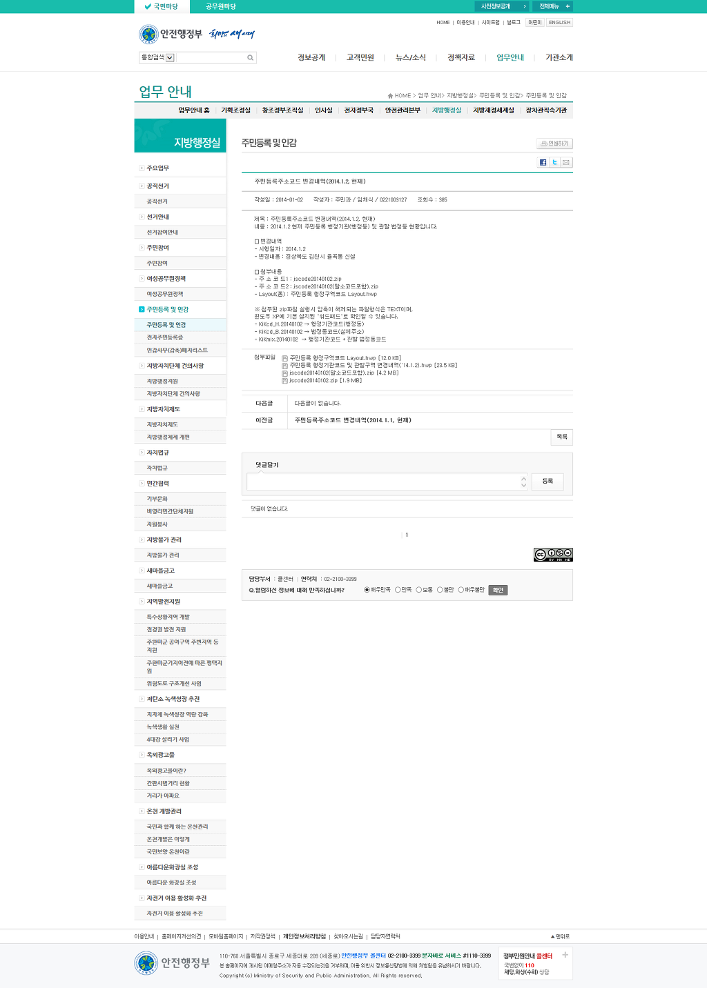 법정동 행정동 => 주민등록주소코드 변경내역(2014.1.2. 현재) 작성자태초에○○○이 천지를 창조하시니라|작성시간14.01.10|조회수158 목록 댓글 0 글자크기 작게가 글자크기 크게가 http://www.mospa.go.kr/frt/bbs/type001/commxxonSelectBoardArticle.do?bbsId=BBSMSTR_000000000052&nttId=40381 다음검색 현재 게시글 추가 기능 열기 북마크 공유하기 신고 센터로 신고 댓글 댓글 0 댓글쓰기 답글쓰기 댓글 리스트
