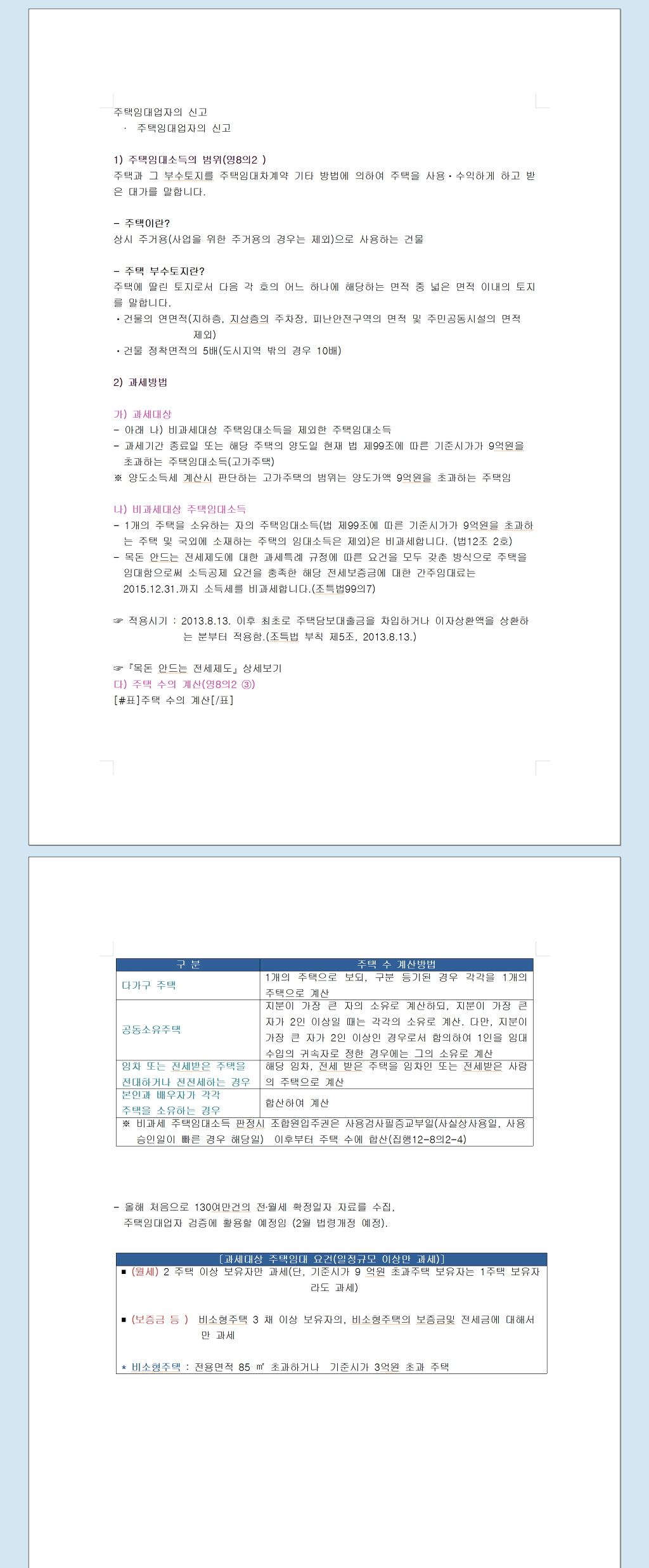 3주택(109㎡ 3채), 전세보증금 합계 3억원 초과시만 과세(3억원 이하시 비과세) | |