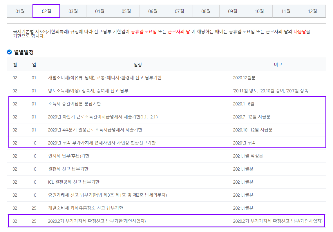 * 매출·매입처별 계산서합계표 및 매입처별 세금계산서합계표 제출기한 : 2021.2.10.까지