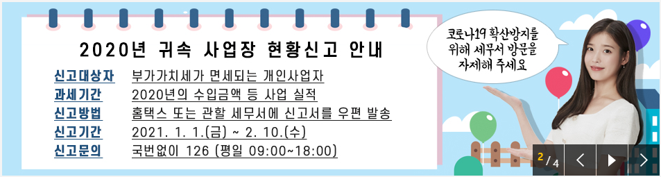 2021년 2월 10일 사이에 사업장 관할 세무서에 신고하시면 됩니다.