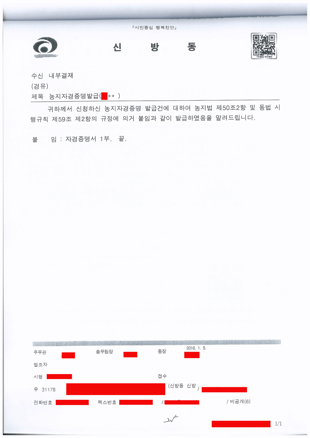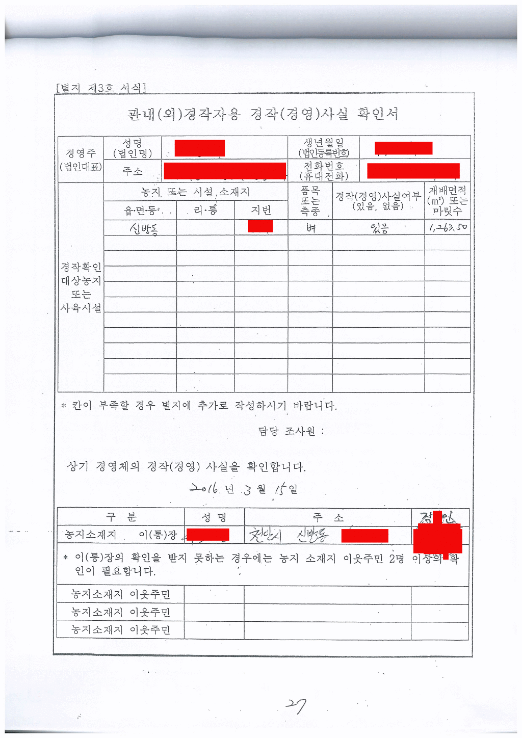 농지원부 농지자경증명서 경작사실확인서 양식 자경사실확인서 경작사실확인서 작성자주황규 팀장|작성시간16.03.25|조회수14,724 목록 댓글 0 글자크기 작게가 글자크기 크게가 경작사실확인서.hwp 첨부파일첨부된 파일이 6개 있습니다. gif 파일 농지원부---1.gif 다운로드 gif 파일 농지원부---2.gif 다운로드 gif 파일 농지자경증명---1.gif 다운로드 gif 파일 농지자경증명---2.gif 다운로드 gif 파일 경작사실확인서.gif 다운로드 hwp 파일 경작사실확인서.hwp 다운로드 다음검색 현재 게시글 추가 기능 열기 북마크 공유하기 신고 센터로 신고 댓글 댓글 0 댓글쓰기 답글쓰기 댓글 리스트