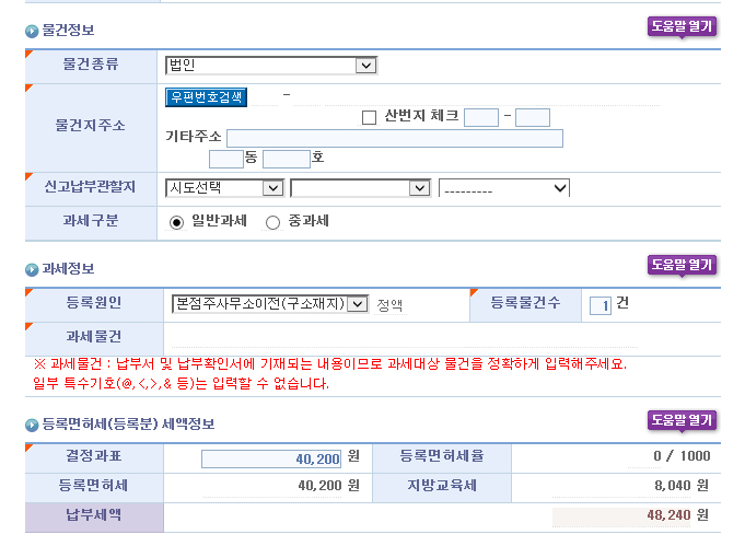질문) 현재 본점 화성에 있구요, 서울에 지점이 있습니다. 이번에 목적추가 와 임원 변경 하려하는데 그럼 등록세 40,200원 씩 화성, 서울에 내면 되는거 맞나요?? 그리고 연건으로 서울에 지점 2곳을 설치하려고 하는데 그럼 화성 40,200원 서울 지점마다 각 120,600원씩 납부하면 되는거 맞나요?? 고수님들 알려주세요. ㅠ |