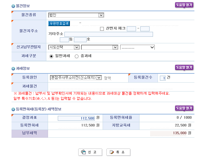 라. 본점 또는 주사무소의 이전: 건당 11만2천5백원(2014.01.01 개정)