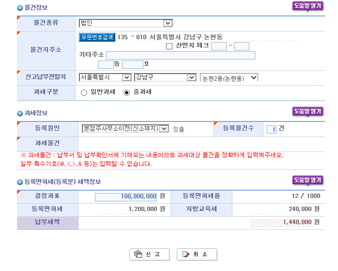 그럼 지점설치가 2곳이여도 등록세는 1건만 납부하면