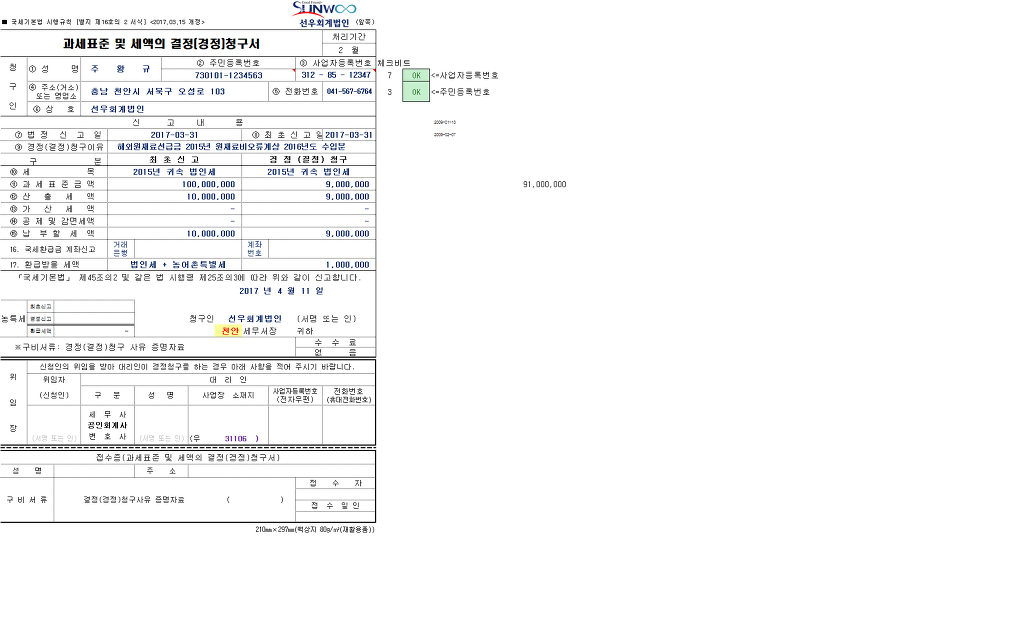 작성자Jayden Ju.작성시간17.04.11조회수3,287 목록 댓글 0경정청구서 수정신고서