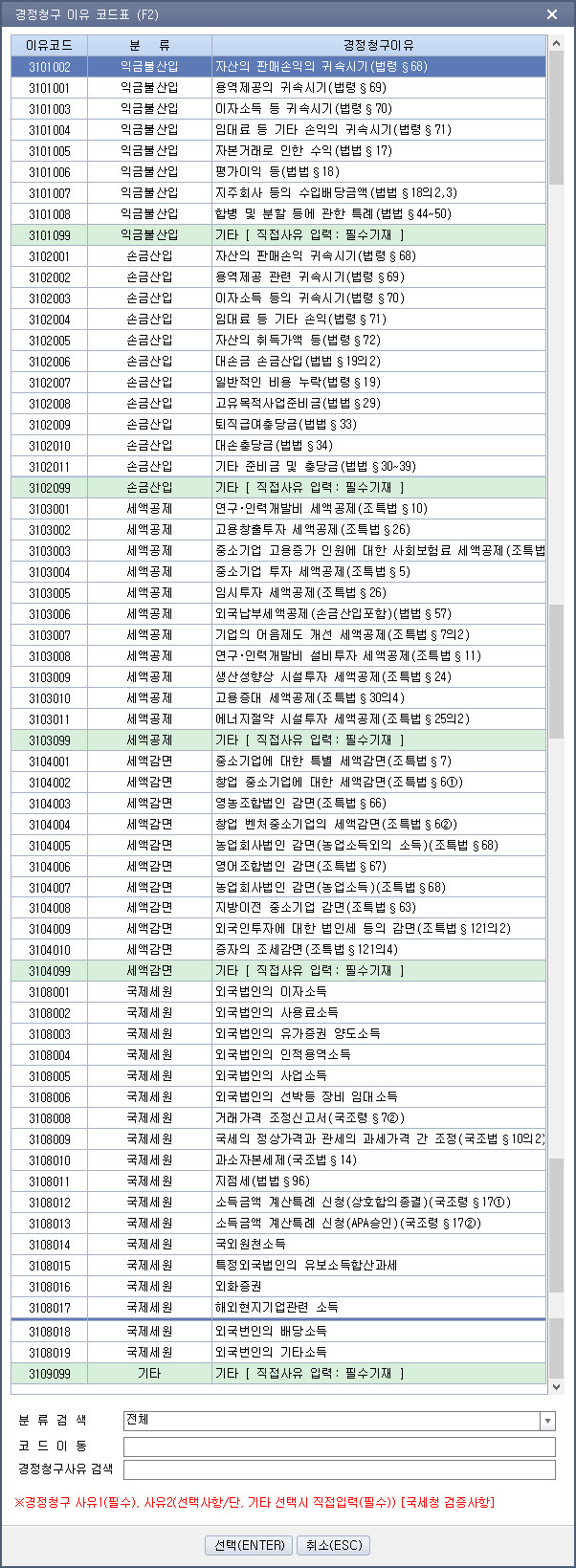 | 3103099 | 세액공제 | 기타 [ 직접사유 입력: 필수기재 ] |