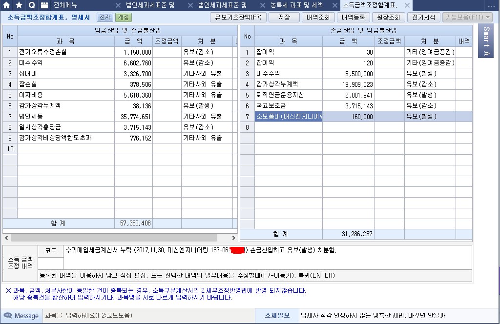 | 3102099 | 손금산입 | 기타 [ 직접사유 입력: 필수기재 ] |