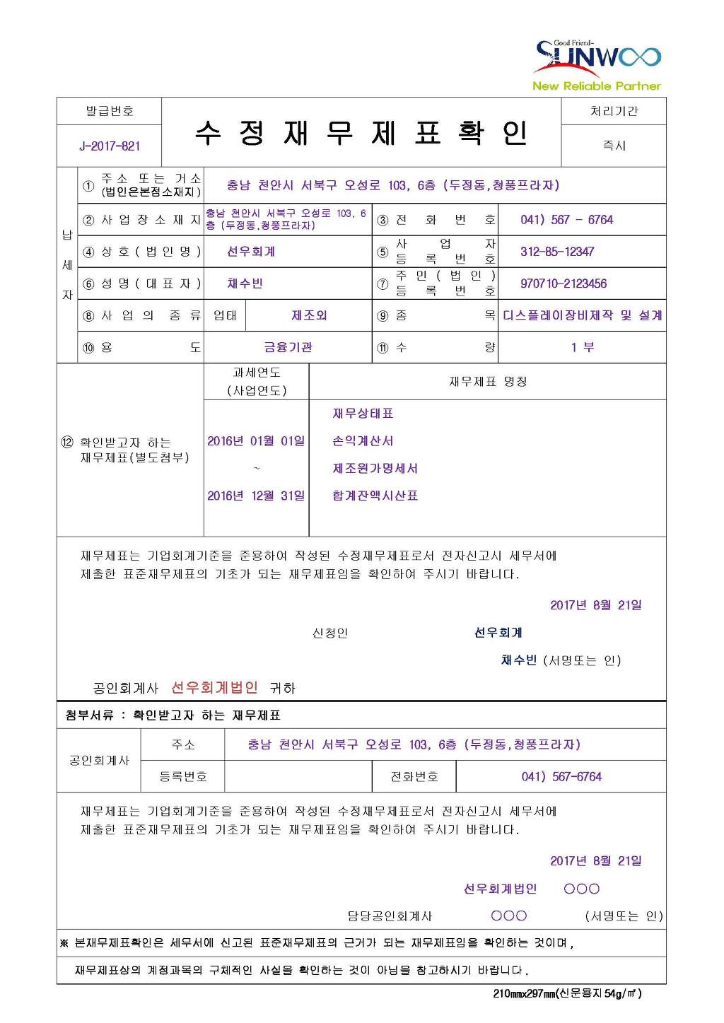 수정재무제표 확인 , 수정재무제표확인 , 수정 재무제표 확인 , 가결산재무제표 확인 , 추정재무제표 확인 , 재무제표확인 작성자Jayden Ju.|작성시간17.08.21|조회수1,232 목록 댓글 0 글자크기 작게가 글자크기 크게가 조세실 추정재무제표표지 추정재무제표 표지 재무제표확인 가결산재무제표확인 (2017-11-20) (1).xlsx 재무제표 (2017-11-10).xlsx 첨부파일첨부된 파일이 7개 있습니다. jpg 파일 추정재무제표표지 추정재무제표 표지 재무제표확인 수정재무제표확인.jpg 다운로드 png 파일 수정신고.png 다운로드 xlsx 파일 재무제표 (2017-11-10).xlsx 다운로드 xlsx 파일 조세실 추정재무제표표지 추정재무제표 표지 재무제표확인 가결산재무제표확인 (2017-11-20) (1).xlsx 다운로드 jpg 파일 세무사.jpg 다운로드 jpg 파일 선우회계법인.jpg 다운로드 png 파일 코링크프라이빗메쿼티.png 다운로드 다음검색 현재 게시글 추가 기능 열기 북마크 공유하기 신고 센터로 신고 댓글 댓글 0 댓글쓰기 답글쓰기 댓글 리스트