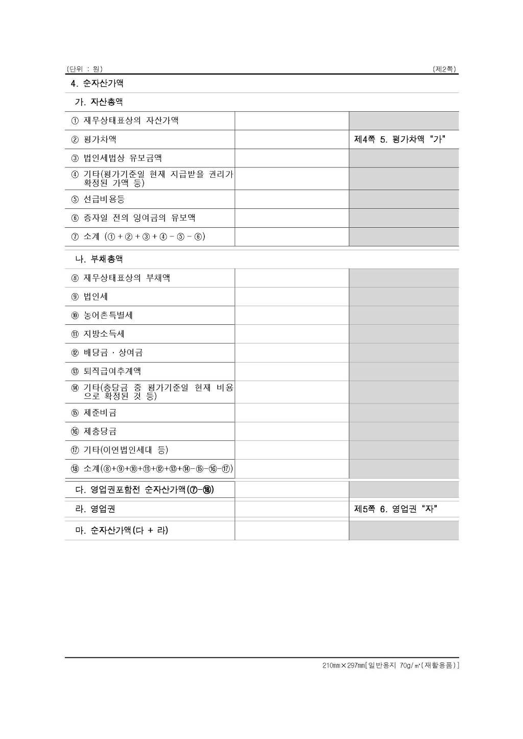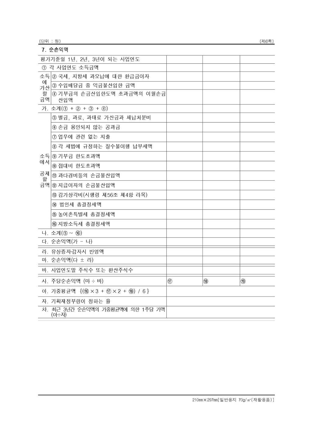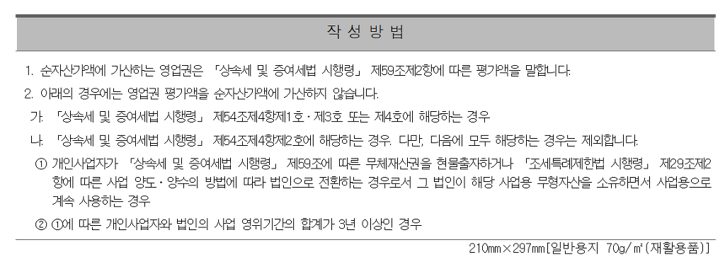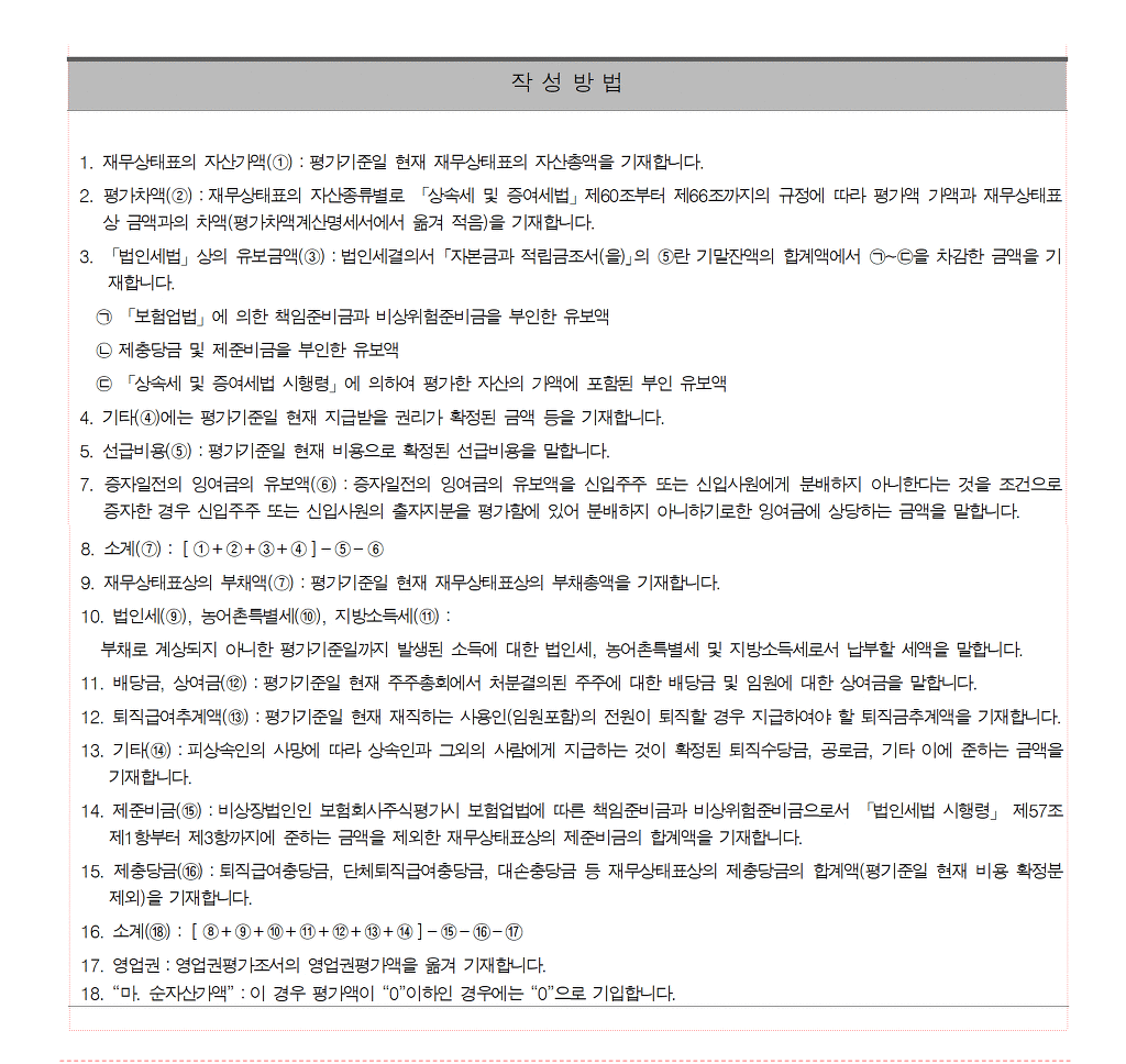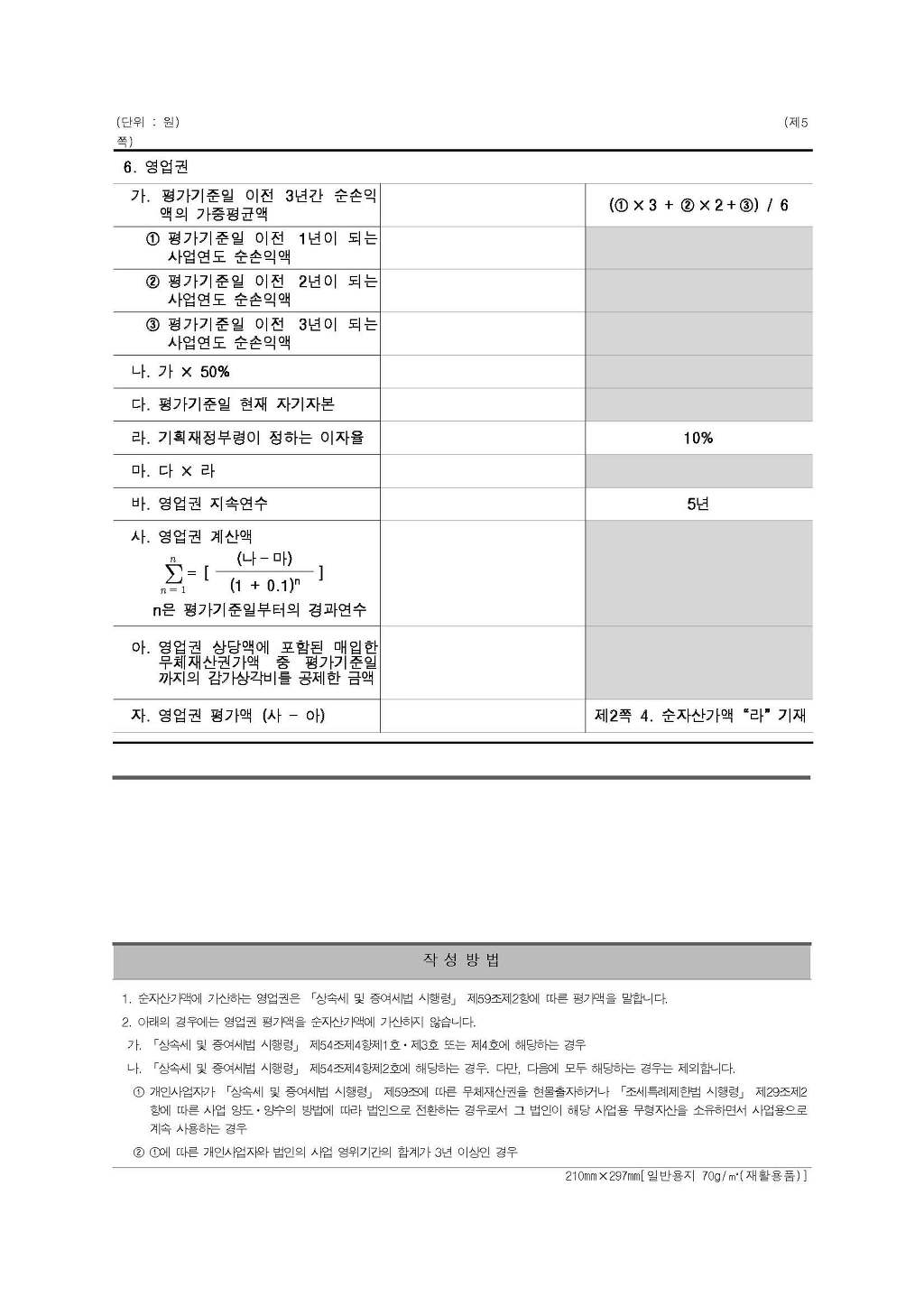 비상장주식 등 평가서 <평가심의위원회 운영규정 별지 제4호 서식 부표3> (2017.07.01 개정) 작성자EYEDI|작성시간17.11.18|조회수2,105 목록 댓글 0 글자크기 작게가 글자크기 크게가 평가기준일 2017.07.01. 이후 서식 비상장주식 등 평가서 (평가심의위원회 운영규정 별지 제4호 서식 부표3) (2017.07.01 개정).hwp 비상장주식 등 평가서 (평가심의위원회 운영규정 별지 제4호 서식 부표3) (2017.07.01 개정).pdf 첨부파일첨부된 파일이 12개 있습니다. hwp 파일 비상장주식 등 평가서 (평가심의위원회 운영규정 별지 제4호 서식 부표3) (2017.07.01 개정).hwp 다운로드 pdf 파일 비상장주식 등 평가서 (평가심의위원회 운영규정 별지 제4호 서식 부표3) (2017.07.01 개정).pdf 다운로드 jpg 파일 비상장주식 등 평가서 (평가심의위원회 운영규정 별지 제4호 서식 부표3) (2017.07.01 개정)_Page_1.jpg 다운로드 jpg 파일 비상장주식 등 평가서 (평가심의위원회 운영규정 별지 제4호 서식 부표3) (2017.07.01 개정)_Page_2.jpg 다운로드 jpg 파일 비상장주식 등 평가서 (평가심의위원회 운영규정 별지 제4호 서식 부표3) (2017.07.01 개정)_Page_3.jpg 다운로드 jpg 파일 비상장주식 등 평가서 (평가심의위원회 운영규정 별지 제4호 서식 부표3) (2017.07.01 개정)_Page_4.jpg 다운로드 jpg 파일 비상장주식 등 평가서 (평가심의위원회 운영규정 별지 제4호 서식 부표3) (2017.07.01 개정)_Page_5.jpg 다운로드 jpg 파일 비상장주식 등 평가서 (평가심의위원회 운영규정 별지 제4호 서식 부표3) (2017.07.01 개정)_Page_6.jpg 다운로드 jpg 파일 비상장주식 등 평가서 (평가심의위원회 운영규정 별지 제4호 서식 부표3) (2017.07.01 개정)_Page_7.jpg 다운로드 gif 파일 순자산가액.gif 다운로드 gif 파일 순자산가액.gif 다운로드 png 파일 영업권.png 다운로드 다음검색 현재 게시글 추가 기능 열기 북마크 공유하기 신고 센터로 신고 댓글 댓글 0 댓글쓰기 답글쓰기 댓글 리스트